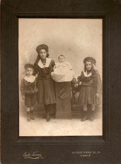 Esta fotografia do estúdio de Júlio Novais, retrata Mário, Ema, Fernanda e Alda Mattos e Silva. Data de Março de 1906.