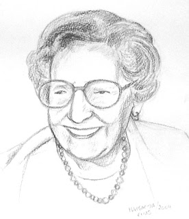 A minha mãe disse-me uma vez para começar a pôr aqui obras da 4.ª geração. Eu acho que não estou ao nível das gerações anteriores, mas aqui fica um desenho retratando a avó Irene, que foi Irene Vaz Serra de Moura, avó do meu marido.