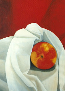 Gosto muito deste auto-retrato da minha mãe, muito novinha (1970). Um aspecto interessante é que (por trás dela) parece ver-se a pintura de tese, pintada na mesma época.