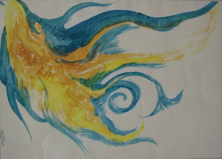 Esta pintura pertencia ao conjunto de Verão. Teoricamente abstracta, as cores ganharam forma e eu própria, bem como as outras pessoas, vi aqui um «pássaro de fogo».
